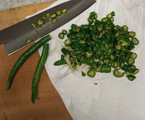夏本番、釣れる魚も青物がメインとなる時期。今年も青唐辛子の醤油漬けを作りました。昨年は夏の終わりに作りましたが、今年は7月後半という事で出回っている青唐辛子も辛みが強い!作り方は他のレシピ等をご参考いただくとして・・・。刻む際には、ビニール…